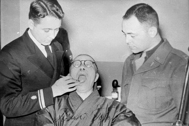 By the time he reached Sugamo, his teeth were in terrible shape. All of the upper ones had been extracted or rotted away. Only seven remained on the bottom. He needed dentures to speak at his upcoming war crimes trial, and the task fell to the dental team at the nearby 361st Station Hospital in Tokyo.
