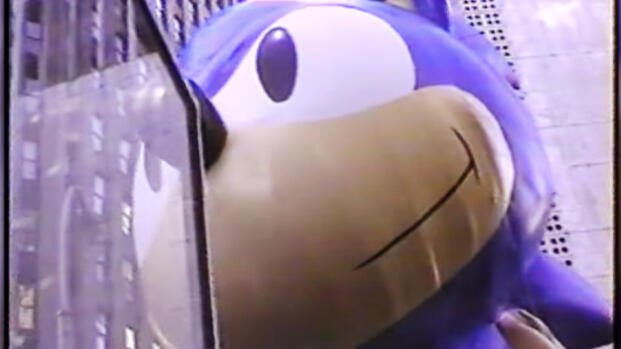 Sonic the Hedgehog Balloon (1993), captured by a bystander, right before it popped and caused a metal light post to fall. Used under fair use.