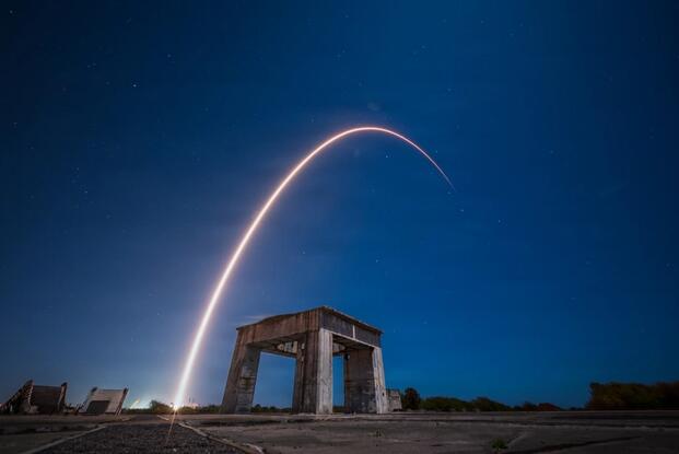 A Falcon 9 rocket carrying the Starlink 10-41 mission successfully launches from Space Launch Complex 40 at Cape Canaveral Space Force Station, Florida, on Mar. 1, 2026. Following liftoff, the Falcon 9 will deploy 29 Starlink satellites into low Earth orbit after stage separation, with recovery operations of the first stage booster conducted downrange in the Atlantic Ocean. U.S. Space Force photo illustration by Gwendolyn Kurzen. Source: DVIDS.