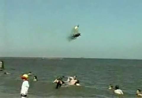 Air show spectator captures the fatal crash of a MiG23. The aircraft strikes the ground and takes to the air
