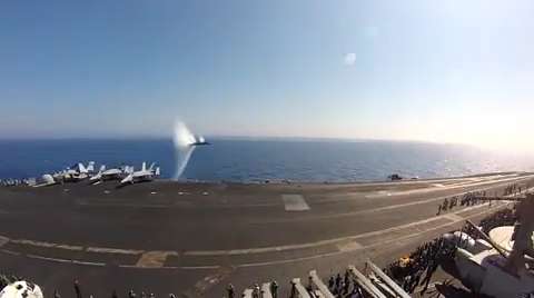 ARABIAN GULF (Dec. 31, 2014) Aircraft assigned to Carrier Air Wing 17 finish out 2014 flight operations aboard USS Carl