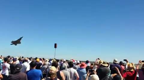 The F-22 Raptor thrills the crowd with an up close takeoff and vertical climb at the 2013 Melbourne Air Show.