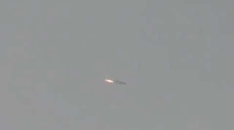According to the source, this video shows a Syrian Air Force MiG fighter crashing into the ground resulting in a
