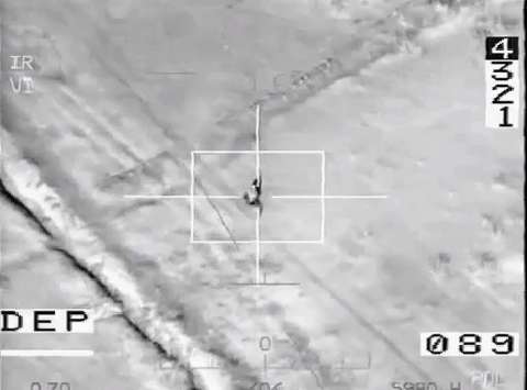 Source states this is footage of a French jet fighter striking a Taliban biker in Afghanistan. Possibly taken from a