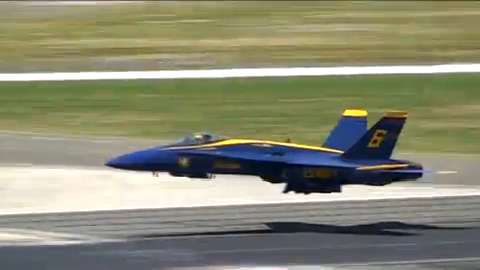 Craig "Merlin" Olson, Blue Angel #6, performs the low transition high performance climb to the split-S on takeoff. This video