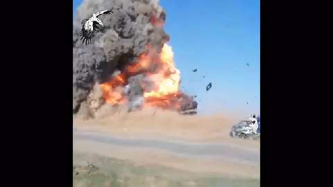 Iraqi Popular Mobilization forces blow up an ISIS VBIED in the Samarra West Desert.