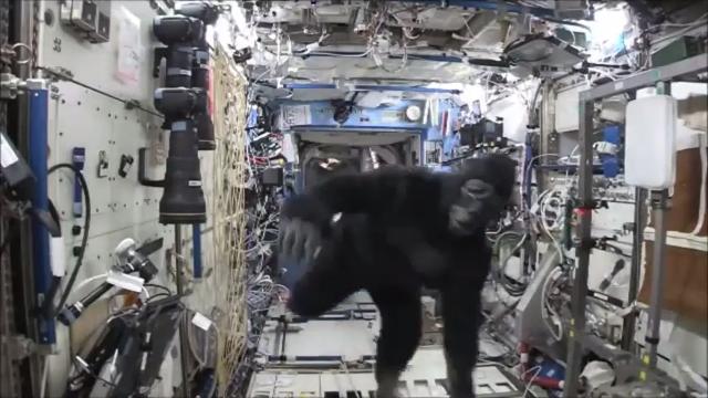 Astronaut Scott Kelly has a little fun with his fellow astronauts, and dresses up like a gorilla.