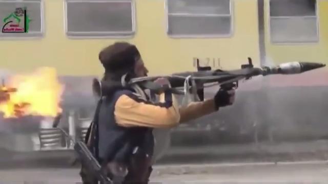 Iraqi forces inside an M1 Abrams tank target ISIS positions with their night vision systems.