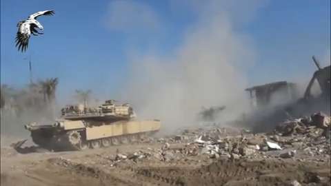 An Iraqi M1 Abrams Tank spots an ISIS VBIED during the Battle of Ramadi, and destroys it.
