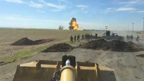 Kurdish Peshmerga blows up an incoming ISIS VBIED with Milan ATGM.