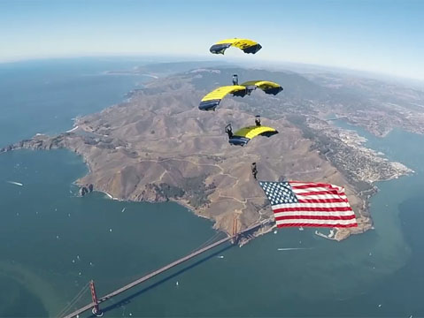 Experience the Navy Leapfrogs' spectacular Fleet Week jump over sunny San Francisco alongside the team, thanks to a handy helmet