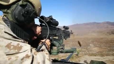 U.S. Marines and 1st Light Armored Reconnaissance Battalion during training, shooting the powerful 25mm cannon. The Marines fired small arms
