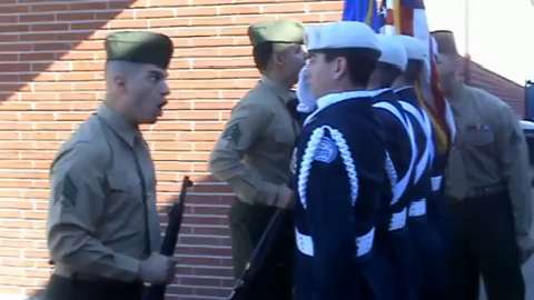 Three Marines put JROTC Cadets through the ringer at a drill competition.