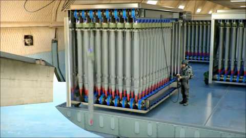 A graphic simulation concept of Top Down Anti-Tank Missiles being deployed via cargo transport.