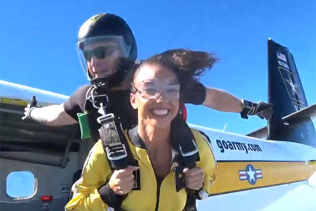 Members of the Miami Dolphins cheerleading team enjoy a day in the air jumping with the US Army Golden Knights.