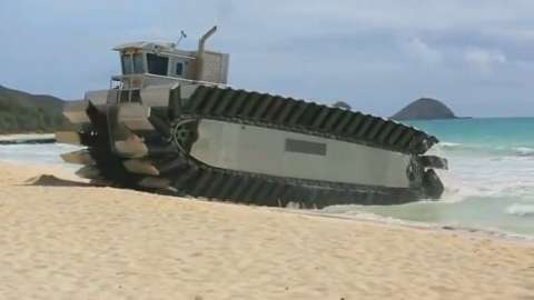 The Ultra Heavy-Lift Amphibious Connector (UHAC) begins to rotate on the beach, 9 Jul 2014, at Marine Corps Training Area