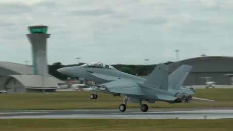The Boeing F/A-18 E/F Super Hornet wows the crowds at the Farnborough Air Show with its flight display.