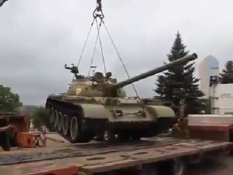 Ukrainian militia hijacks a T-55 tank from a museum in Donetsk and say they plan to repair it for use