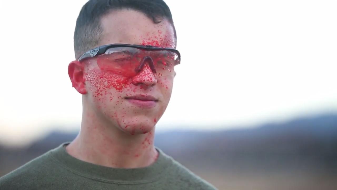 U.S. Marines receive level one oleoresin capsicum spray during non-lethal weapons training at Vaernes Garnison. Marine Rotational Force Europe 17.1