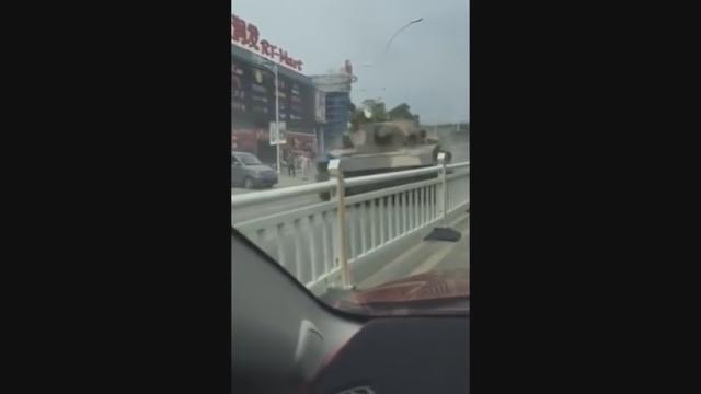 A driver in China comes face to face with an out of control tank, which then crashes into the side