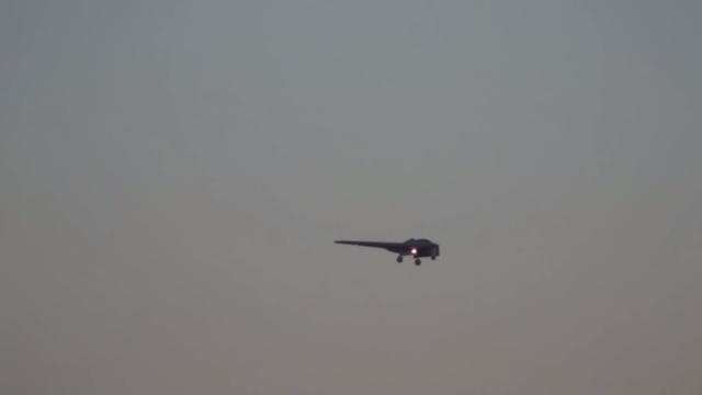 Richard Trajano of North Las Vegas, Nevada captures an RQ-170 Sentinel drone at sunrise coming in for a landing at