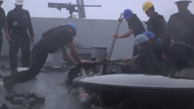 Sailors get the job done in inclement weather.