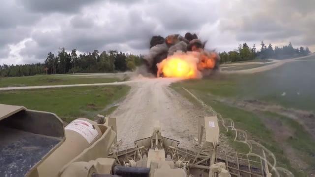 A POV camera captures an Army M1 Assault Breacher Vehicle from 10th Engineer Battalion firing off a Mine Clearing Line