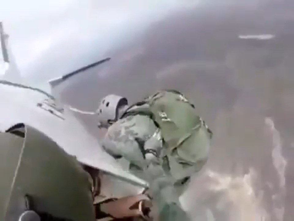 U.S. Army Rangers jump out of a perfectly good UH-60 Black Hawk Helicopter.