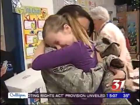 A young girl at Cherrydale Elementary School in Steilacoom got a very special surprise Friday -- her military father, who