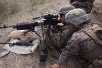 U.S. Marines shoot M240B Machine Guns during live-fire Exercise Platinum Lynx at Babadag Military Training area in Romania on September