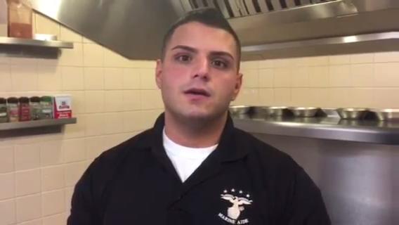 U.S. Marine Corps chef, Sgt. Frank Cala, apologizes for a comment he made after his elimination Friday April 1, 2016
