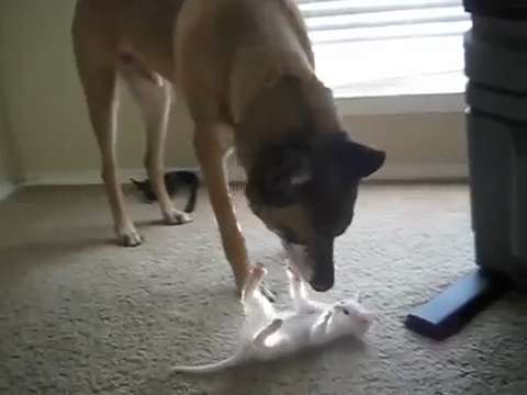 Well this is something different for a change. A retired military working dog has his first encounter with a kitten.
