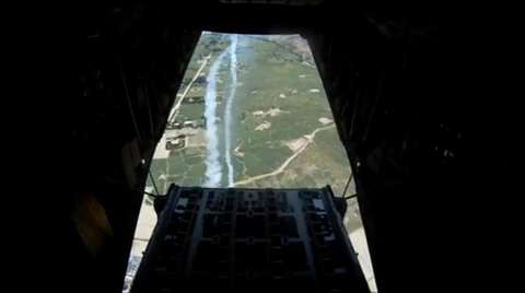 A Peterson AFB, CO C-130 H3 Airdrop in Afghanistan in 2011. Airdrop load of approximately 18K in supplies while flares