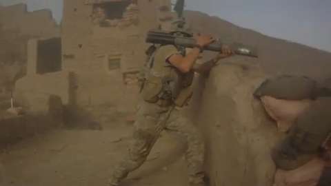 US and ANA soldiers are ambushed by Taliban fighters in Panjwai. Around the 2:00 mark an ANA gunner goes behind