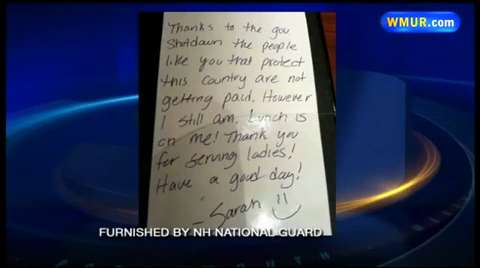 New Hampshire Ruby Tuesday's waitress Sarah said she didn't think much of her good deed for two furloughed National Guardsmen