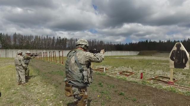 U.S. Army Soldiers, assigned to 16th Combat Aviation Brigade, 7th Infantry Division, fire M4 carbines and M9 pistols during a