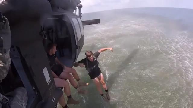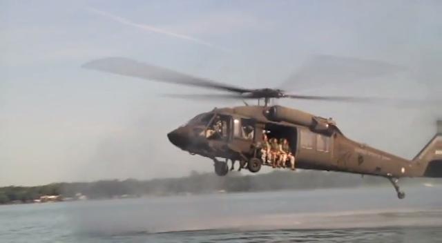 U.S. Army Rangers from 1st Battalion, 75th Ranger Regiment, jump from 3rd Combat Aviation Brigade UH-60M Black Hawk and CH-47F