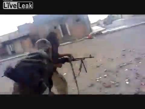A Gaddafi fighter takes out an NTC rebel in the battle for Sirte, Libya.