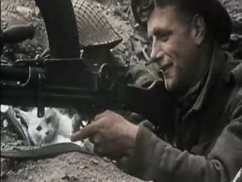 Great scene at the :27 sec mark where a soldier plays with a cat ready to pull the trigger on