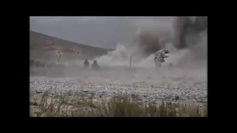 AH-64 Apache helicopter destroys Taliban militants hiding over a ridge in Afghanistan. Strikes occur around the 1:37, 2:17 and 2:40