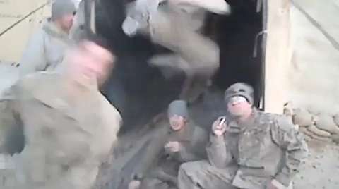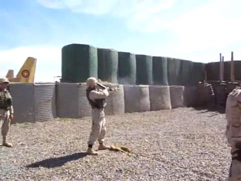 Playing with a sawed off double barrel shotgun. Watch as this troop FAILS to hold onto it tight enough the