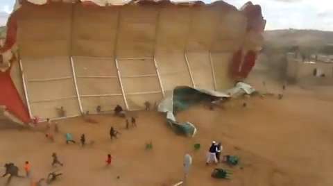 Preparations for a ceremony in Libya went awry when a hovering CH-47 damaged the large tent it was to be