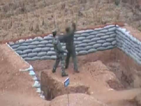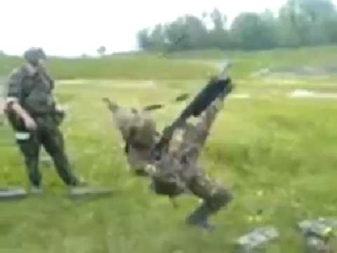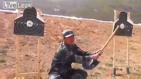 Chinese hand grenade training goes wrong. Luckily for the recruit, the trainer has quick reaction speed and saves him from