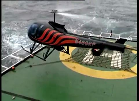 Damn that was close. You can actually hear the rotor blades contact the ship.