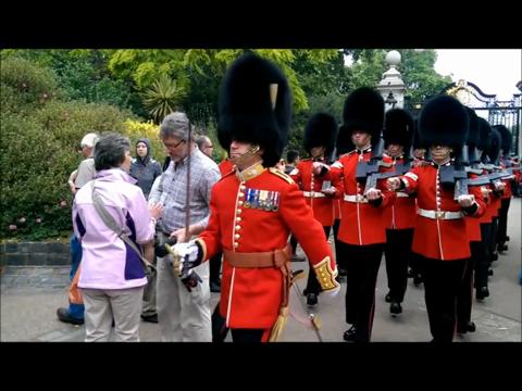 Don't be caught off guard when the Queen's Guards are coming through!