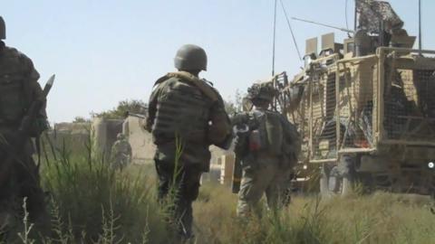 A truck gets hit by a Taliban RPG, prompting a firefight in Shari Afghanistan. U.S. and British soldiers quickly return