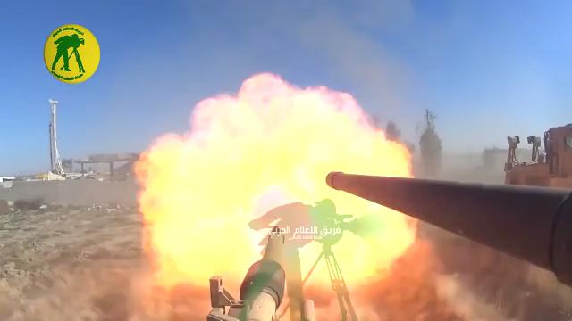 A Kata'ib Hezbollah convoy including IRAM launchers, M198 howitzers, M1 Abrams and M88 recovery vehicles heads toward the frontline against