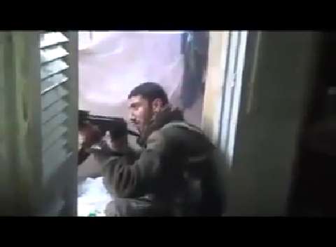 An IRAM rocket is caught on camera flying through the air right before it hits near rebel fighters south of