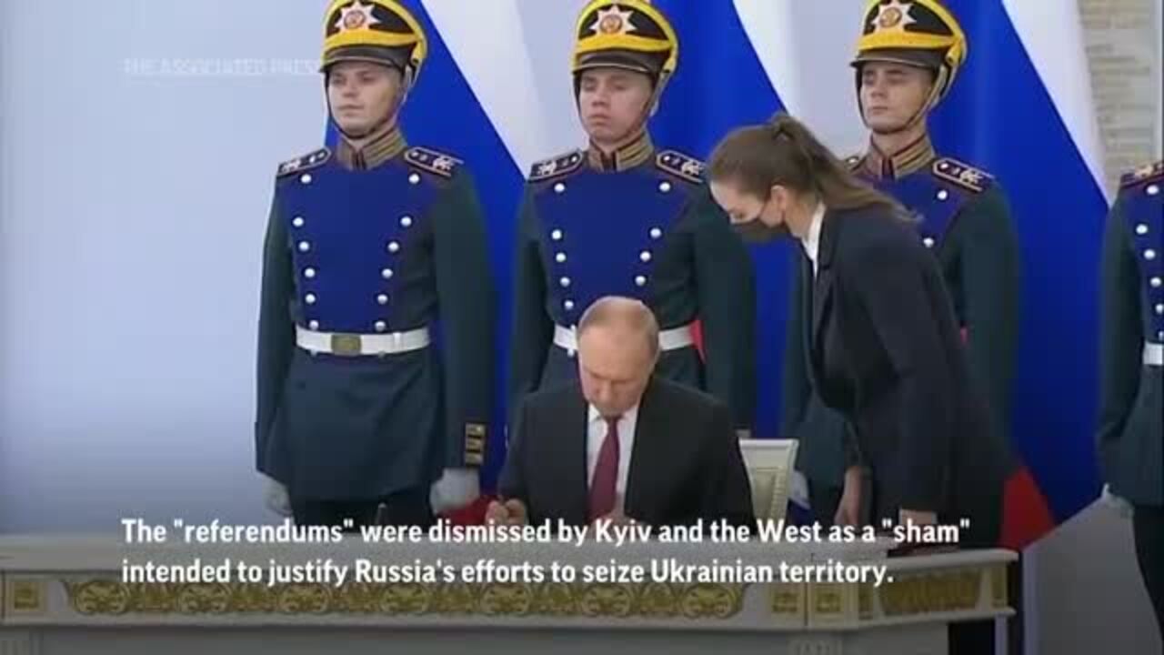 Russian President Vladimir Putin has signed treaties to annex parts of Ukraine into Russia, defying Western powers. (Sep 30) AP