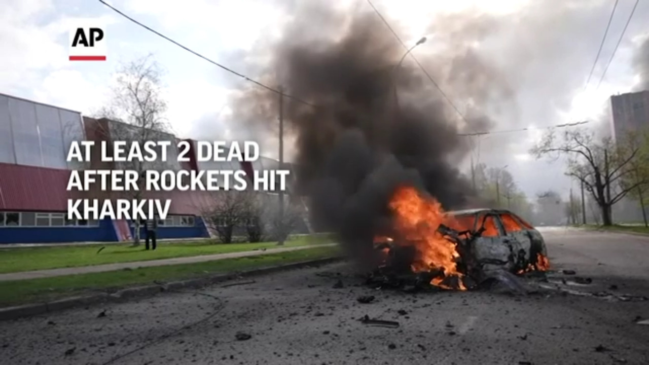Rockets struck a neighborhood in Kharkiv on Thursday, and at least two civilians were burned to death in their car